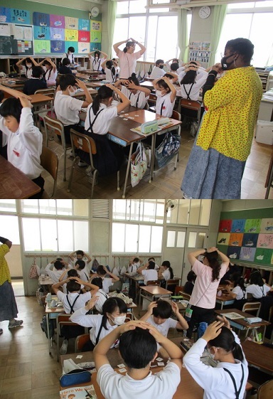 C-NETのティアラ先生の言う英語の言葉を聞いて、その頭文字のアルファベットの小文字のカードを取るゲームを楽しんでいました。