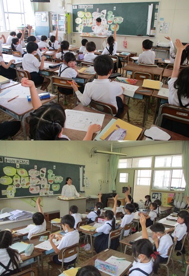6月20日(火)2年生が食に関する指導を栄養職員の先生から受けていました。