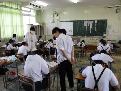 文中の行動や会話から、登場人物の気持ちの移り変わりについて、考える学習をしました。また、大阪市教育センターのスクールアドバイザーの先生に来ていただき、授業力の向上に向けご指導をいただきました。