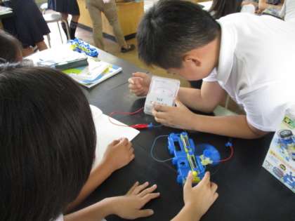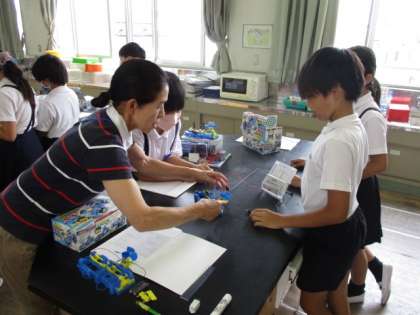 検流計の使い方を学習しました。モーターや電池を含めて回路を作るのが難しかったようです。