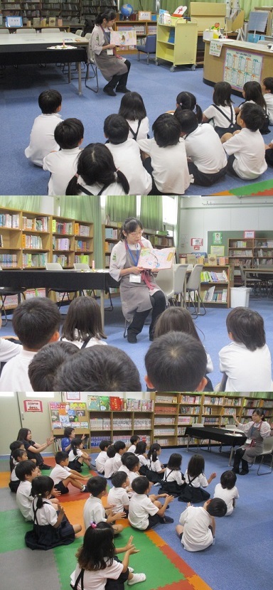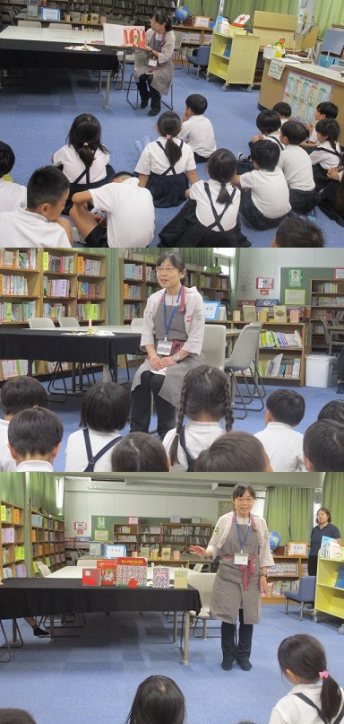 6月23日(金)1年生が学校司書の先生に「読書の会」をしてもらいました。