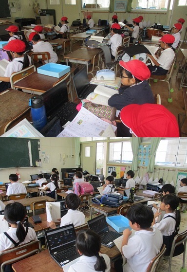 2・3年生は5時間目にあたる時間に各家庭や学校で先生の指導で学習者用端末を使って学習しました。