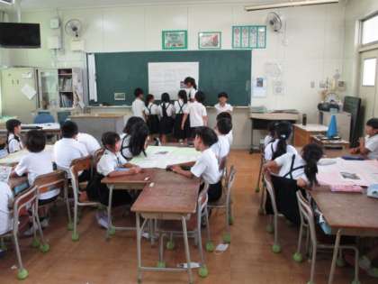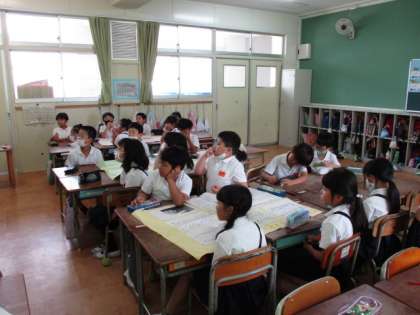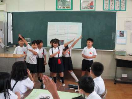 2年生が先日のまちたんけんの振り返りを行いました。みつけたことや聞いてきたことをまとめ、伝え合いました。