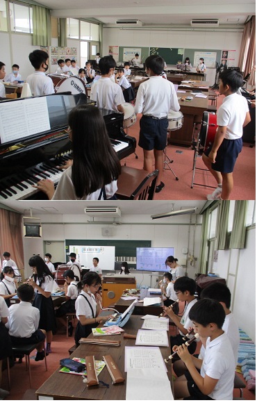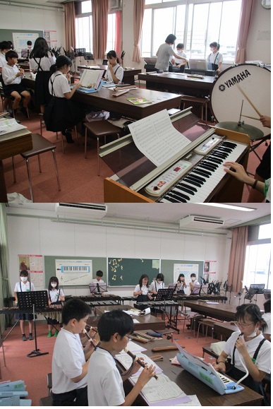 今日の学習の最後に、「もっといい演奏にするにはどうすればいいか」について班で話し合いました。次の音楽の時間には、「他の人の音をよく聴く」「音の大きさのバランスを考えて演奏する」を意識して合奏することとなりました。