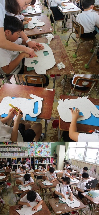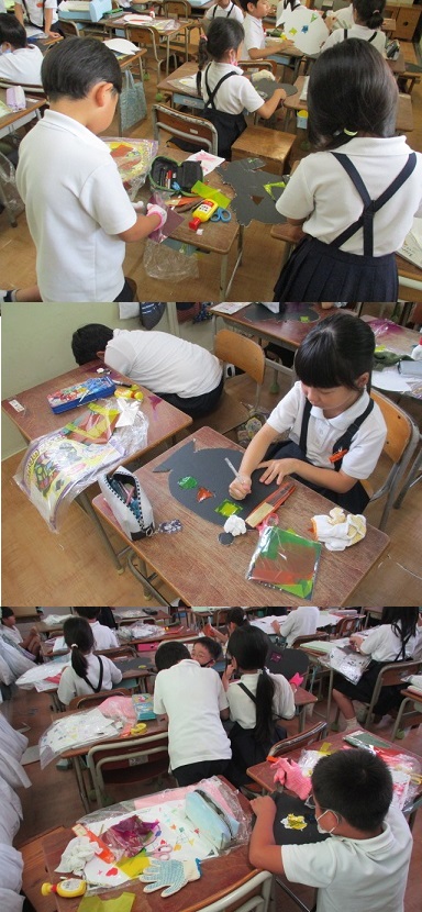 7月12日(水)2年生が図画工作科の時間に、「ひかりのプレゼント」の制作に取り組んでいました。