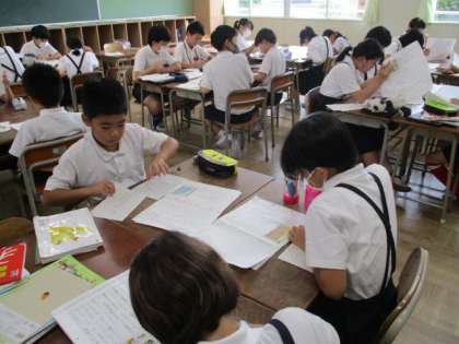 5年生が、国語科で3クラスを4分割した少人数授業を行っています。