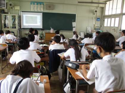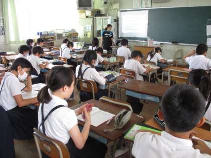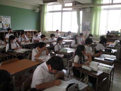 5年生が社会科で米作りについて学習しました。動画を見ながら米作りの過程を調べました。