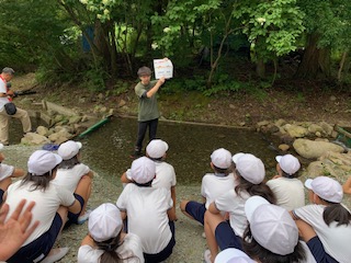 近くの川で魚つかみをしました。