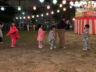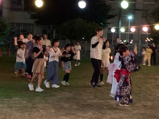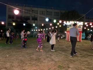 8月18日(金)・19日(土)姫里地域活動協議会主催の「ふれあい盆踊り大会」がコミュニティセンターの広場で行われました。両日ともたくさんの子どもたちや保護者の方も参加され、ドンパン節や炭坑節などの民謡を周りの人に合わせて踊っていました。