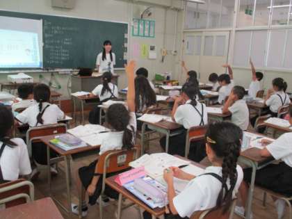3年生が「わる数とあまりの大きさを調べよう」をめあてに習熟度のグループで学習していました。わる数よりもあまりが小さくなることがわかったようです。