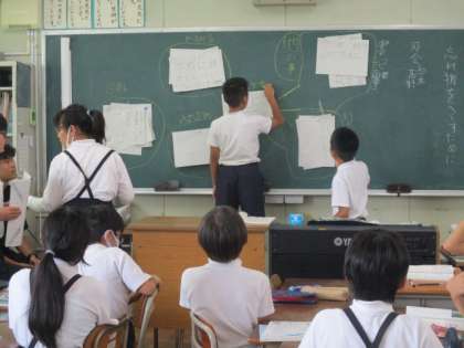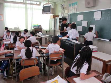 「忘れ物をなくすためにはどうすればよいか」をテーマに話合い活動を行いました。班で原因を出し合い、それらを仲間分けし、どのような解決方法があるかを話し合いました。
