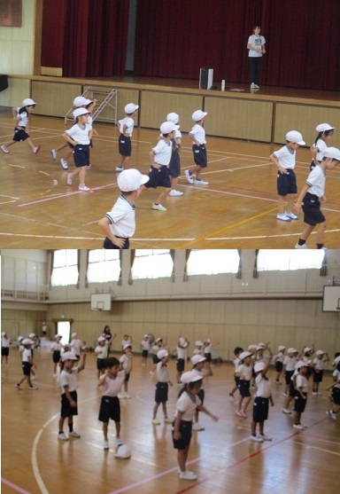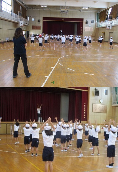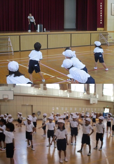 1年生が体育科の時間に、運動会でするダンスの練習をしていました。