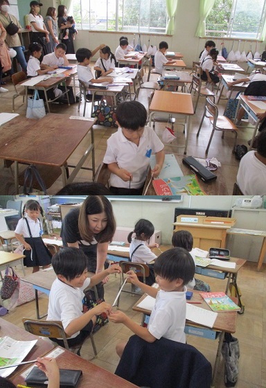 えんぴつやひも、それぞれ2本の長さのくらべ方を考えていました。