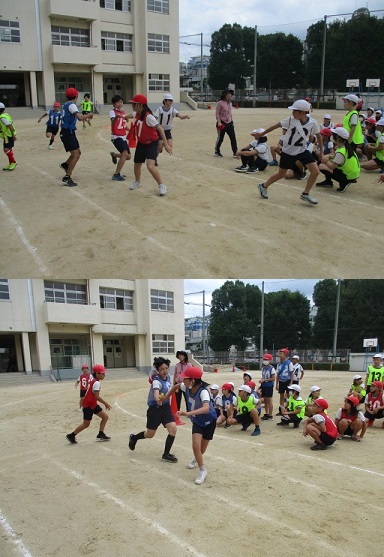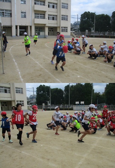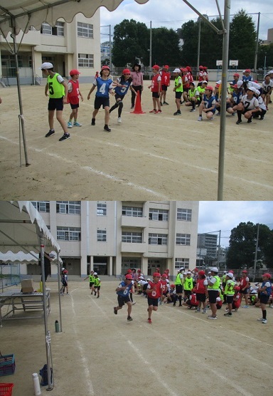 5年生が体育科の時間に、運動会で行う、リレーの練習をしていました。