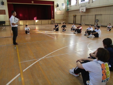 放課後に、教職員で不審者対応訓練(研修)を行いました。