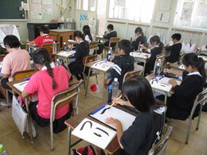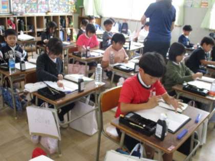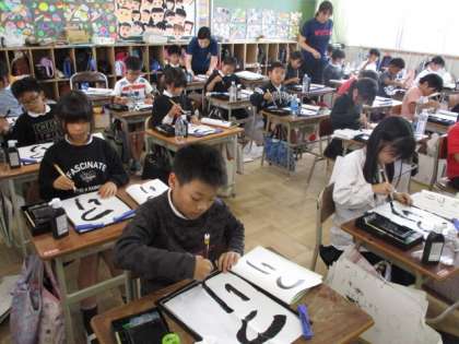 3年生が習字の学習をしていました。「つり」という字をバランスや大きさに注意しながら丁寧に書いていました。