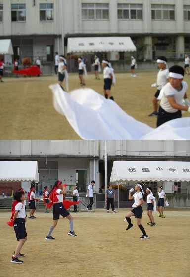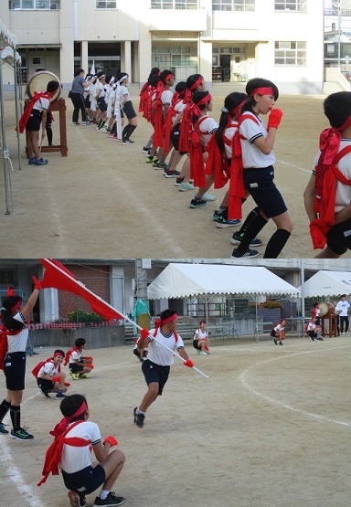赤白のタスキやハチマキをして、気合を入れて熱心に練習を繰り返していました。