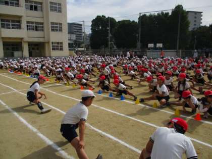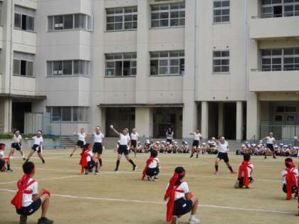 2回目の運動会全体練習を行いました。今回は応援合戦の練習と、閉会式の練習です。応援団に合わせて、全員で大きな声を出して応援の練習をしました。