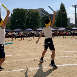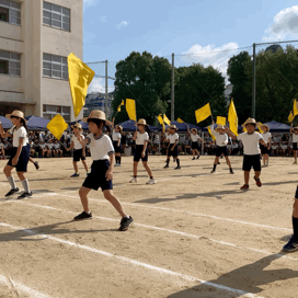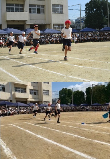 3・4年生もかけっこをしたり、音楽に合わせて棒や旗を振って、リズミカルな演技をしたりしました。