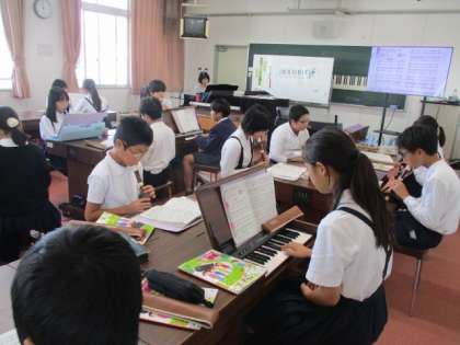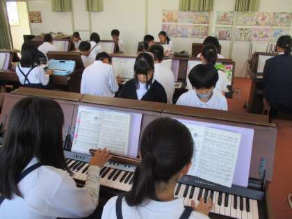 だいたいどんなメロディーかが分かったところで、来週にはパートと楽器を決めて個別に練習を始めます。難しくてもあきらめず、一生懸命取り組んでいました。