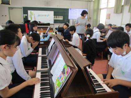 6年生が合奏曲「風を切って」を練習しています。まずは全員でリコーダーを練習しました。それからリコーダー以外のパートをオルガンや鍵盤ハーモニカで練習しました。最後にリコーダー、オルガン、鍵盤ハーモニカに分かれて、ピアノに合わせて合奏しました。
