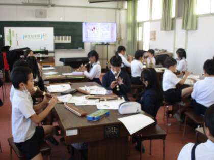 音楽の時間に3年生がリコーダーの練習をしていました。「山のポルカ」という曲です。曲のかんじにあった吹き方ができるように、それぞれで練習しています。