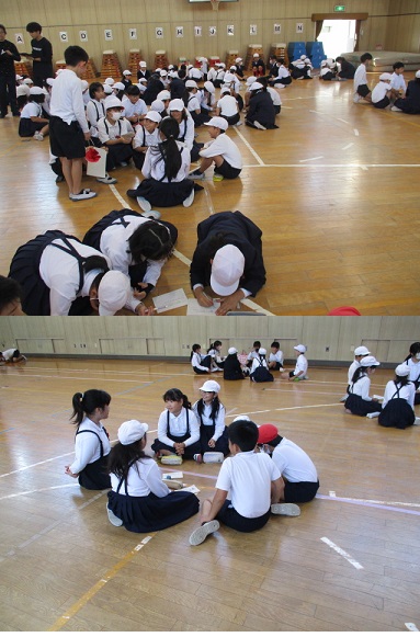 初めに全体で遠足の行先、日時、服装、持ち物など、先生から説明があり、めあてと行き方を確認しました。担任の先生が活動する班とメンバーの発表をした後、班に分かれて活動しました。自己紹介をしてから班のめあてを決めて、遊びの相談をしました。3年生と5年生がペアになって活動するのは初めてで、少し戸惑っている様子も見られましたが、5年生がリーダーとなって楽しそうに相談していました。
