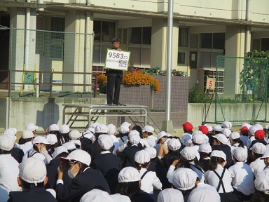 まず、「9583」という数字から始めました。これは、学校の図書室にある本の冊数です。こんなに多くの本がありますが、どれくらいの本を読んでいるか聞きました。また、1か月にどれくらいの本を読むかも聞きましたが、それほど多くは読んでいない様子でした。読書の秋で、もっと本に親しんでほしいと言いました。