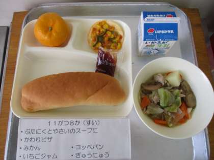 11/8 の給食〜変わりピザ〜調理員さんに感謝☆