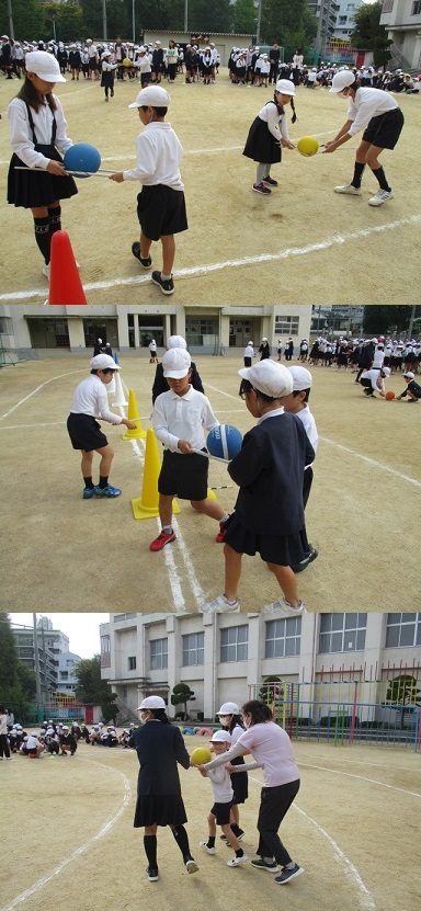 11月9日(木)今朝の児童集会は「ぼうdeボールゲーム」でした。