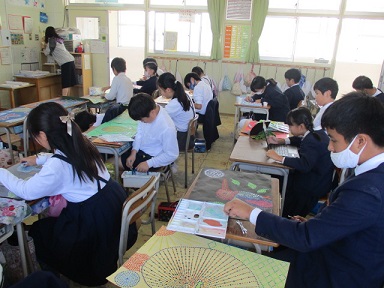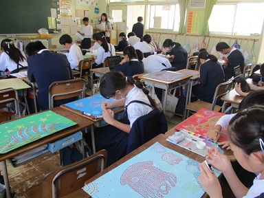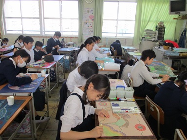 6年生が、図画工作科の時間に、「アボリジニアート」に取り組んでいました。