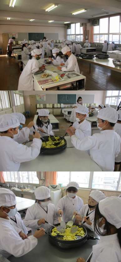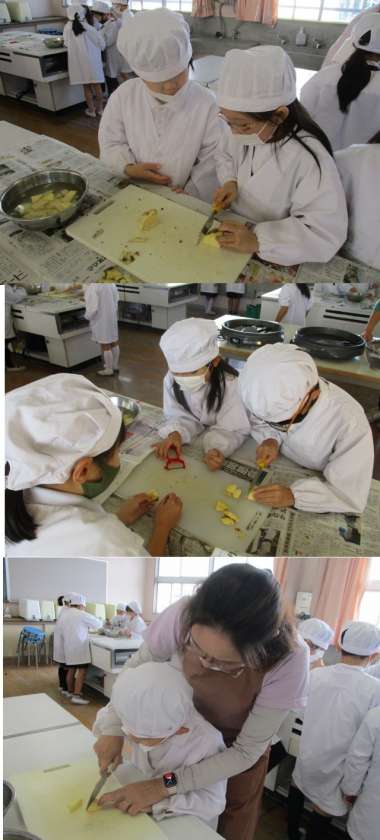 2年生が、さつまいもほりで収穫したさつまいもを使って、パーティをしました♪ピーラーで皮をむき、包丁で切って、油を敷いたホットプレートで焼きます。初めて使う器具にドキドキ緊張気味でしたが、集中して頑張っていました。黄金色に輝く焼きさつまいもの出来上がりました!!