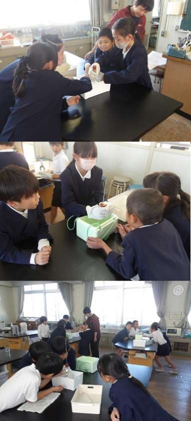 4年生が理科の時間、「水の温度と体積」の学習をしていました。