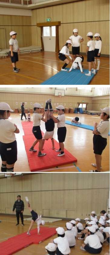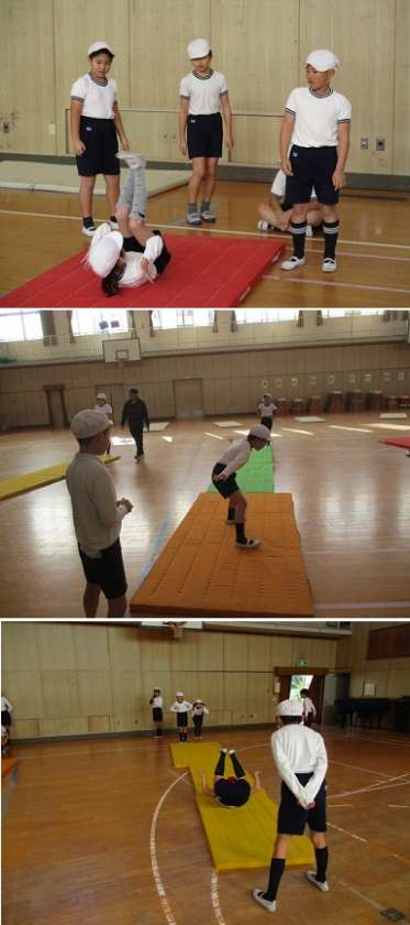 4年生が体育科の時間、マット運動に取り組んでいました。