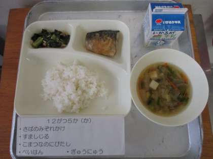 さばのみぞれかけは、塩で下味をつけたさばを焼き物機で焼きます。流水解凍しただいこんおろし、みりん、うすくちしょうゆを合わせて煮、最後にゆず果汁を加えて煮、配缶時にさばにかけます。みぞれかけのタレが後味さっぱりで、ご飯にもよくあいます。