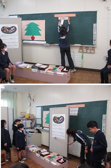 みどり学級の子どもたちがみどりタイムに集まり、クリスマスに向けた活動をしました。