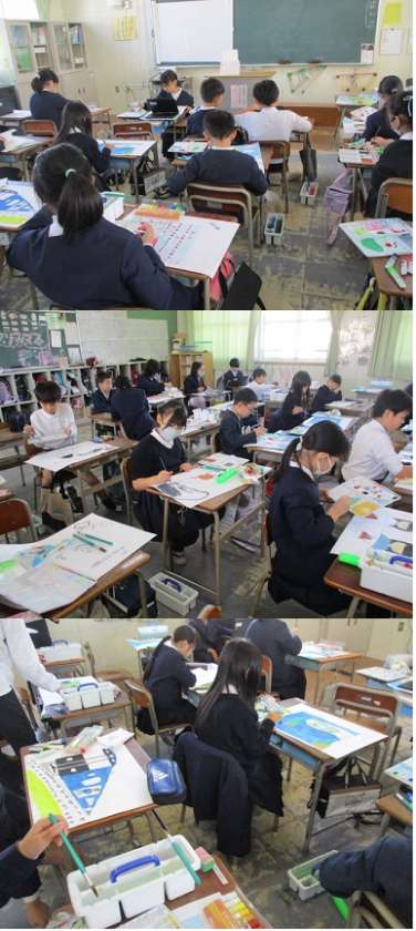 4年生が「忘れられない気もち」と題して、2学期の思い出を絵に描いています。学校での出来事や、家族と出かけたこと、習い事など、それぞれの思い出を絵に表していました。子どもたちは、楽しい出来事を思い出して、熱心に描いていました。