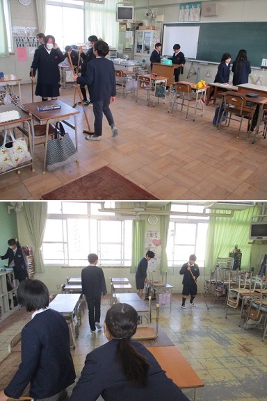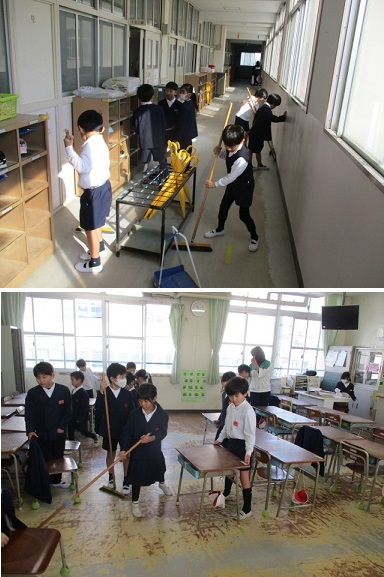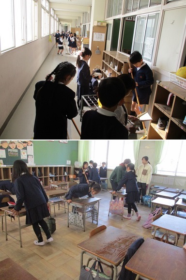 18日間の冬休みに、教室や廊下に溜まったゴミやほこりをみんなで掃除して、子どもたちは身の回りも気持ちも新らしくしていました。