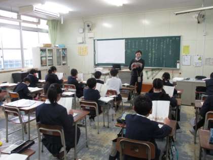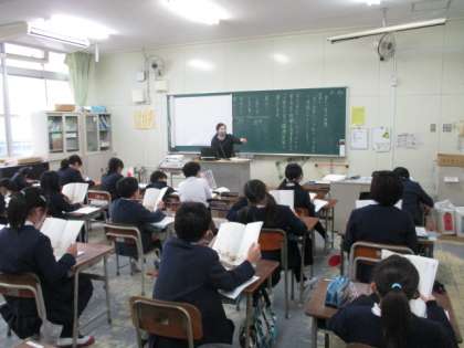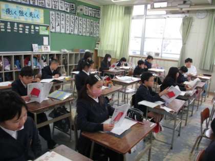 4年生が百人一首の学習をしていました。五七五七七を意識し、リズムよく音読する練習をしました。