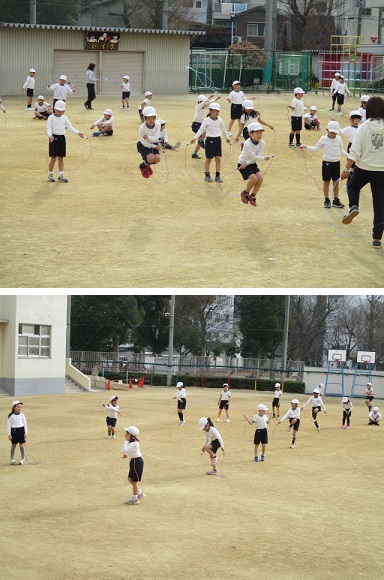 2年生が体育科の時間、「なわとび」に取り組んでいました。