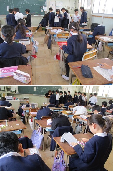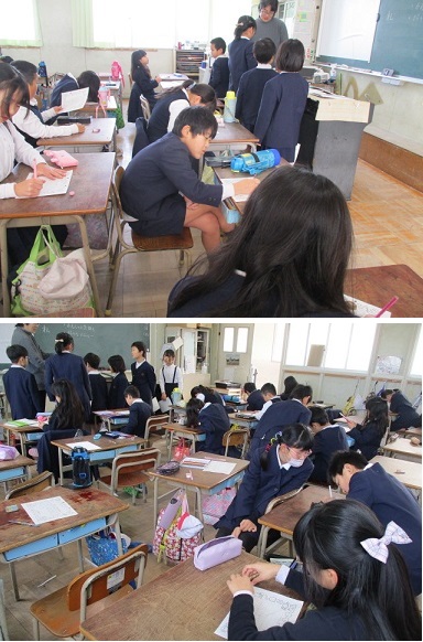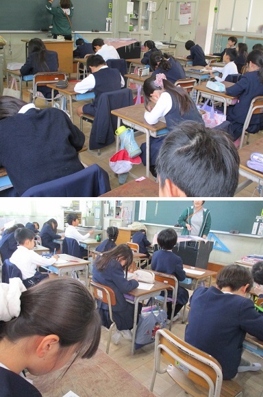 3年生が給食週間を前に、給食調理員さんに渡す感謝の手紙を書いていました。