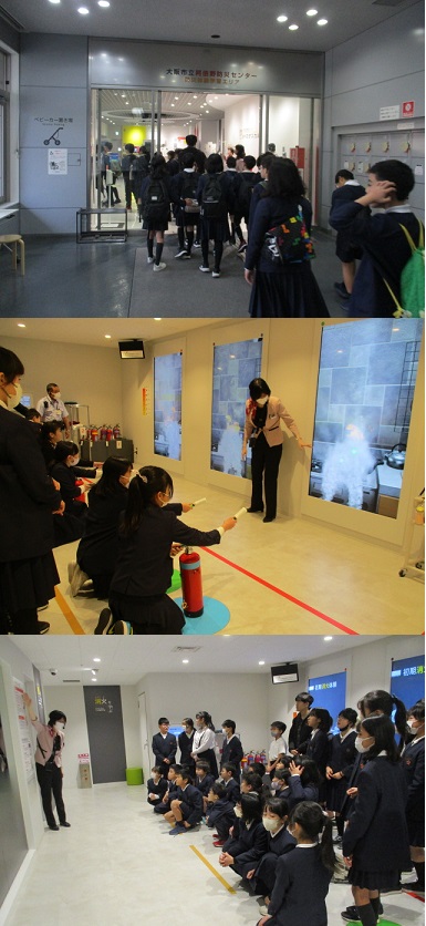 5年生が社会見学で「阿倍野防災センター」へ行きました。「阿倍野防災センター」は、防災に対する知識と技術を総合的な体験を通して学習できる施設です。