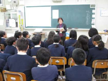 今日は5・6年生の教室で西淀川区おはなしボランティア「パタポン」のおはなし会が行われました。詩を読んでもらったり、物語を聞いたりして楽しく過ごしました。