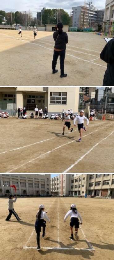 1月22日(月)4年生が体育科の時間、50m走の測定をしていました。