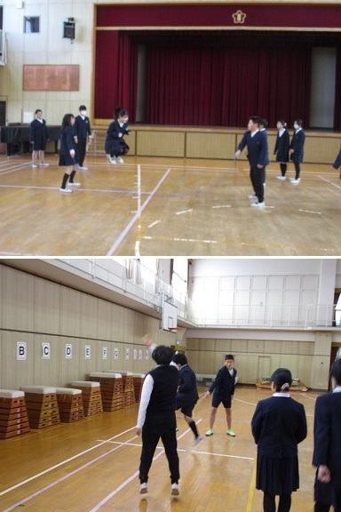 今日(1/23)は、6年3組の子どもたちが20分休みに講堂で、長なわを使い8の字跳びに挑戦しました。大きく縄を回して、一人ずつ入って1回跳んで出るという遊び方です。