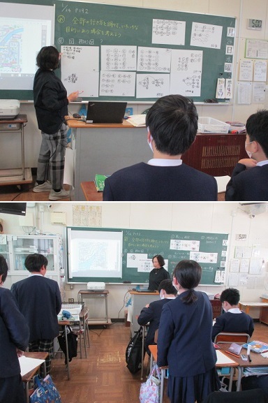 1月24日(水)6年生が算数科の時間、「場合を順序よく整理して」の学習に取り組んでいました。