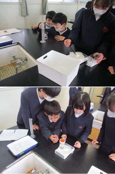 5年生が理科の時間、「もののとけ方」の学習に取り組んでいました。
