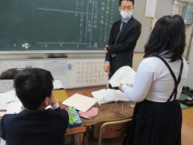 みどり学級で国語科の時間、5年生が「大造じいさんとがん」の学習に取り組んでいました。