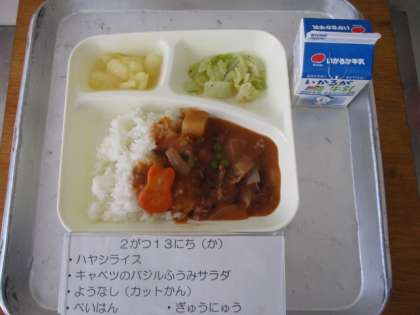 洋なし(カット缶)は1人1/40缶です。なしは、日本なし、中国なし、西洋なしの3種類あります。西洋なしは、「洋なし」とも呼ばれ、日本では「ラ・フランス」という品種が多く作られています。上が細く、下はひょうたんのような形をしているのが特徴です。給食の洋なしも「ラ・フランス」です。その名の通り、フランス生まれのなしです。