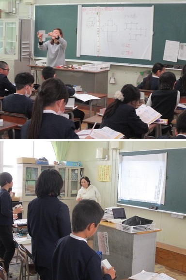 4年生が算数科の時間、「立方体の展開図」の学習に取り組んでいました。紙で作った立方体を開いて、どのような展開図が描けるのか考えました。
